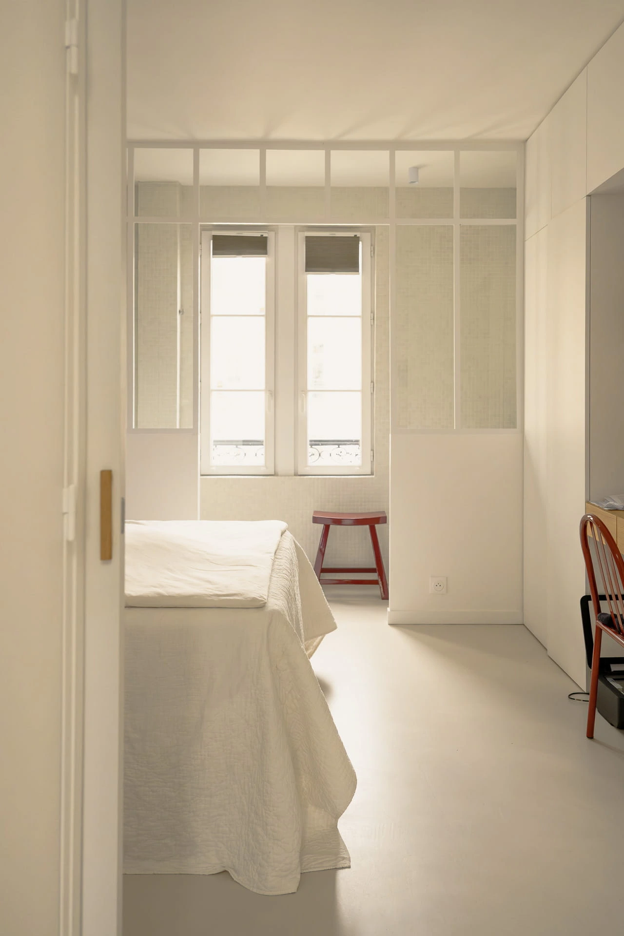 « Après la réussite du duplex, nous avons confié à David Bernstein la transformation complète d’un petit appartement du même immeuble en véritable deux-pièces. Malgré les contraintes techniques, l’attention portée aux volumes, à la lumière et aux matériaux a permis de préserver le charme de l’ancien tout en apportant confort et modernité. Ce projet confirme sa capacité à révéler l’essence d’un lieu. Nous recommandons son accompagnement avec confiance. »