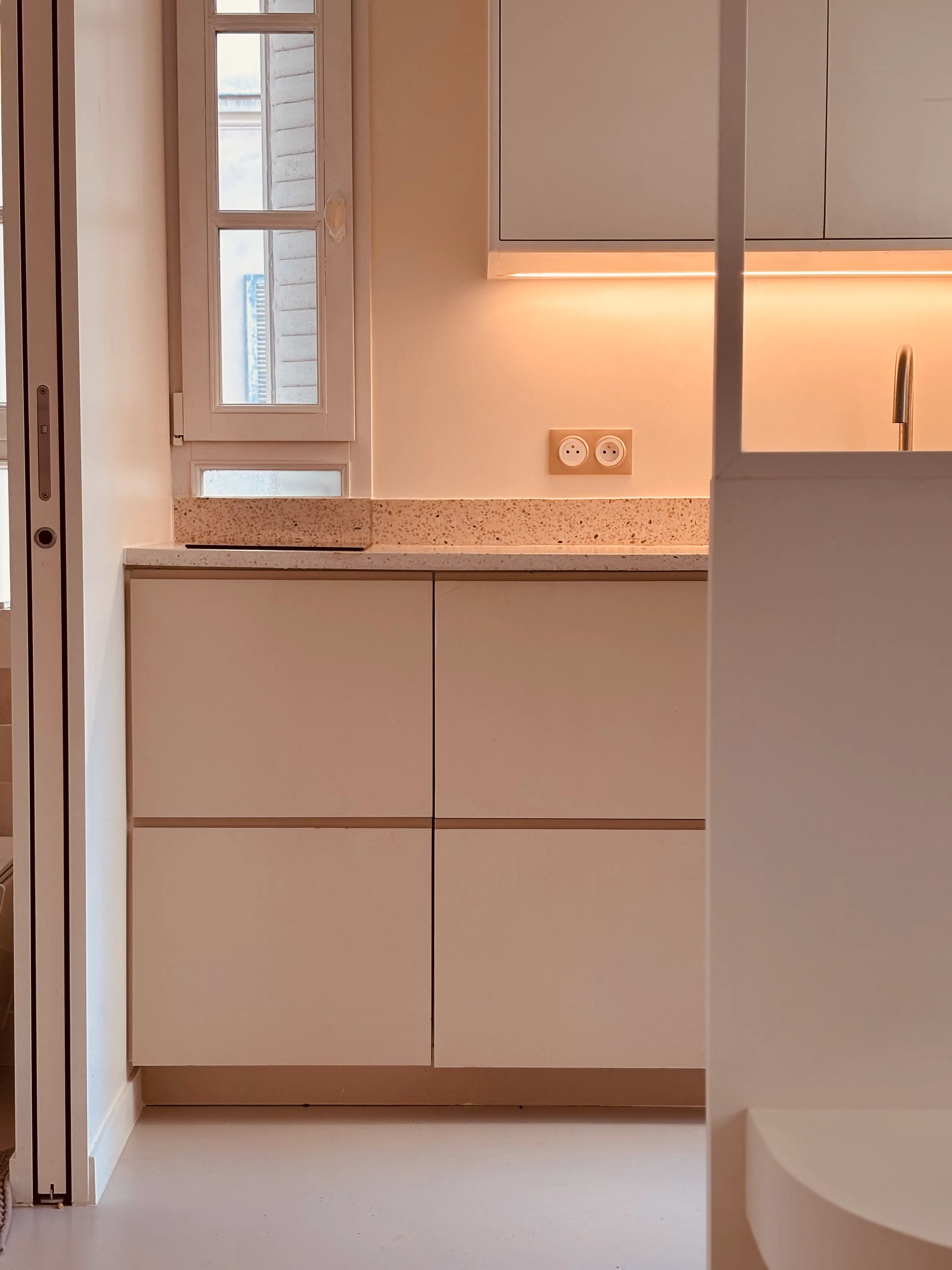 Béton ciré, plan de travail en terrazzo, zellige